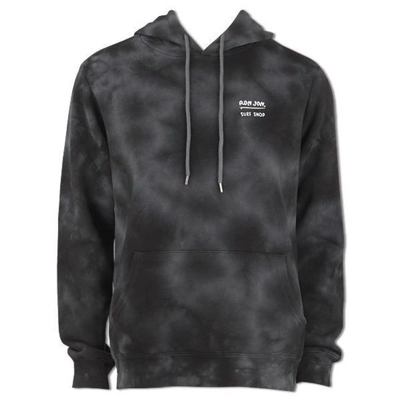 Are you in need of a simple Ron Jon hoodie? Then look no further, the Ron Jon Ashbury Tie Dye Black Pullover Hoodie is perfect for you! This hoodie features a tie-dye fabric, a small Ron Jon logo sitting on a surfboard on the front of the hoodie, a front pouch pocket, and more!