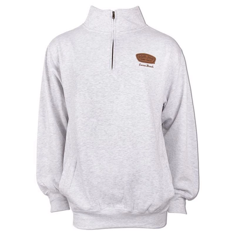 Keep warm and cozy when the breeze rolls in with the Ron Jon Cocoa Beach Patch Quarter Zip Pullover. This quarter zip features a front pouch pocket and a leather Trusty Badge patch with the words Cocoa Beach embroidered underneath.