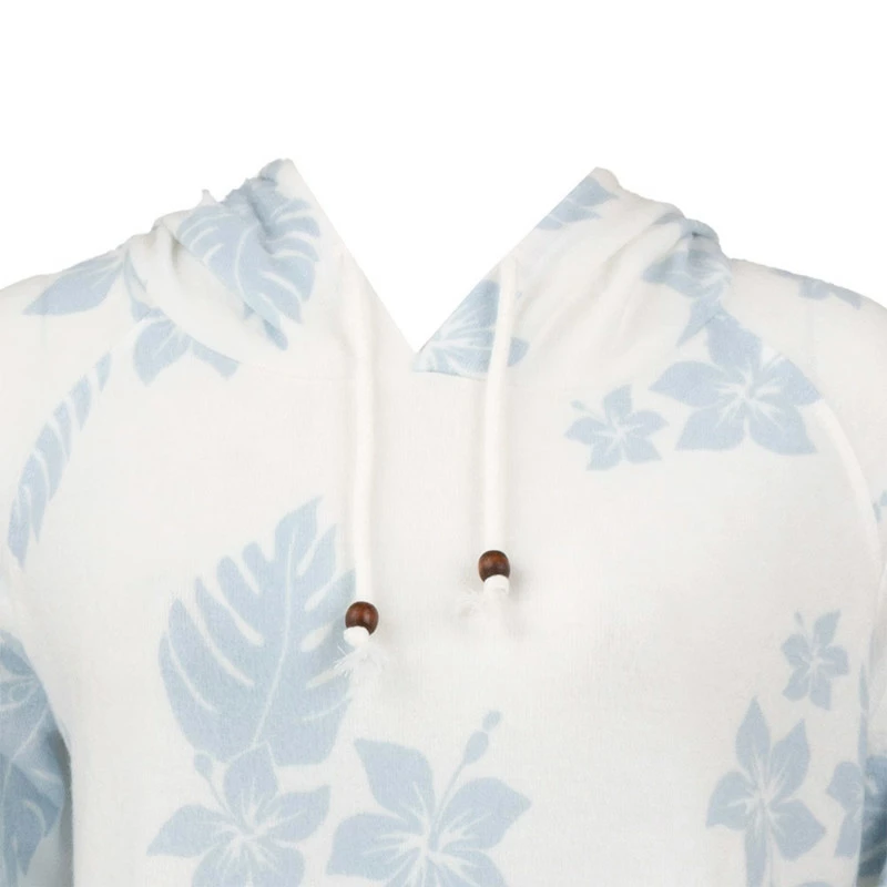 Wrap yourself up in the super soft fabric of the Ron Jon Juniors Aloa Print Hacci Hoodie. Pastel flowers and palm leaves decorate this pullover hoodie.