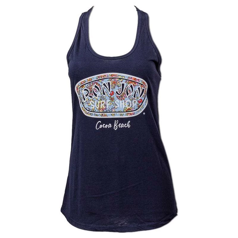 Ron Jon Juniors Paisley Badge Tank has a pretty floral print inside the world famous badge logo.