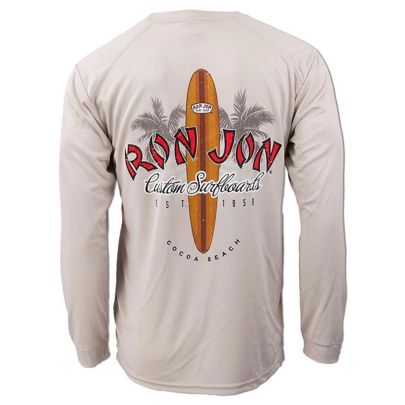 Protect your sensitive skin from solar radiation with the Ron Jon New Longboard Long Sleeve Sun Shirt. With a UPF rating of 50+, it’s like wearing sunscreen without the mess. The design is made to look worn in and distressed.