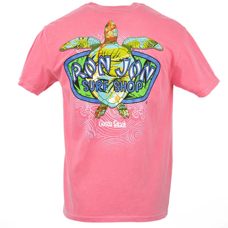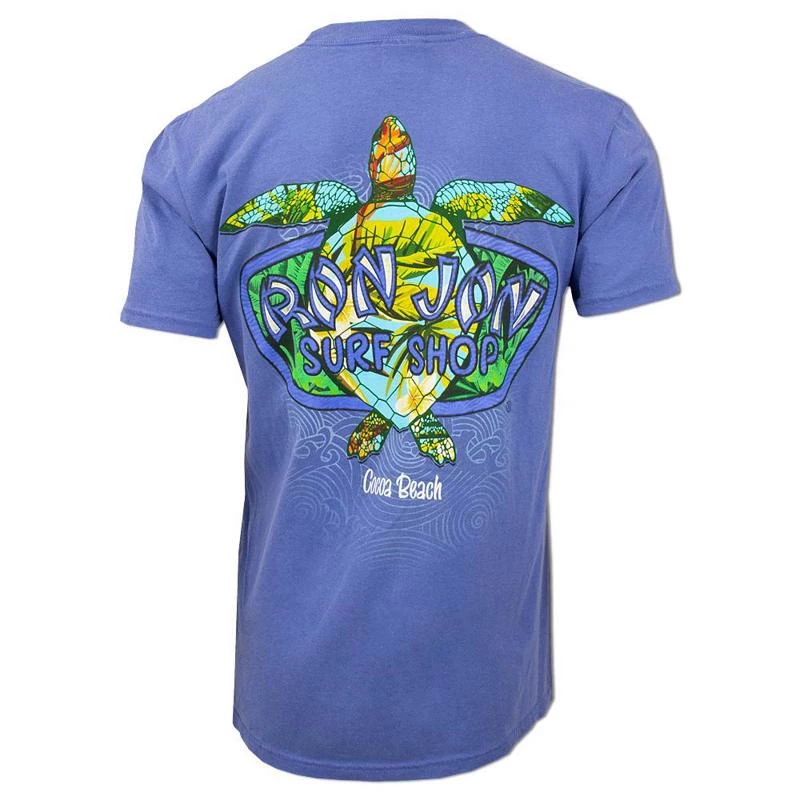 The Ron Jon Sea Turtle Tee shirt features a colorful palm frond design on a turtle and our world-famous Ron Jon badge logo. This t-shirt features Cocoa Beach lettering.