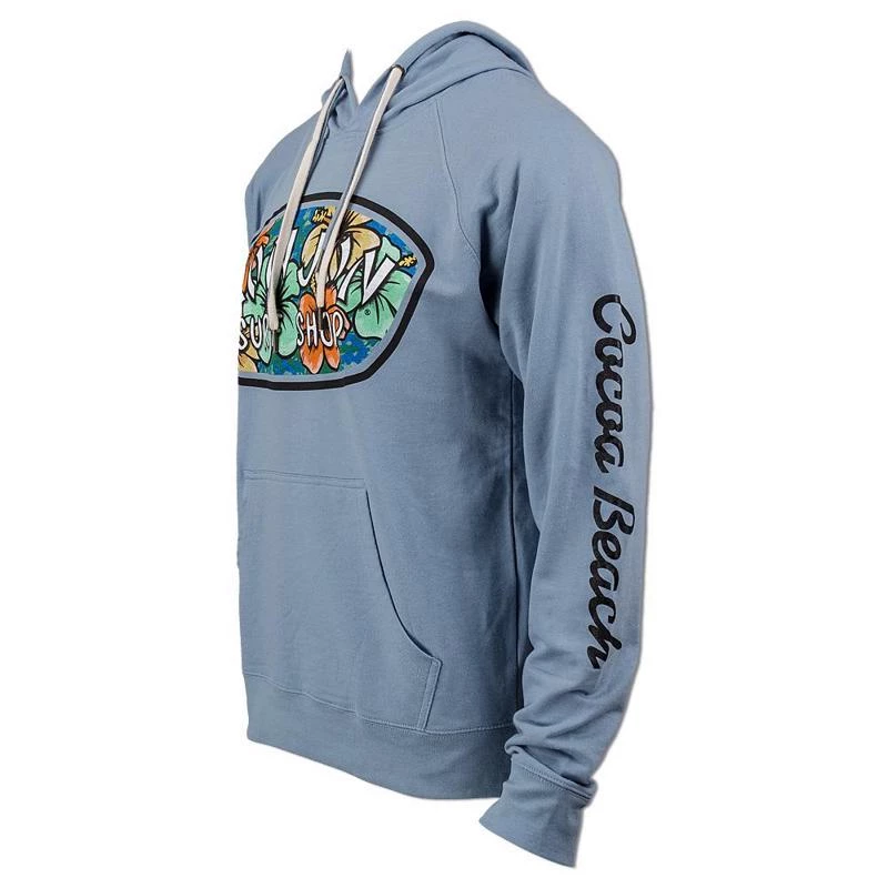 The Ron Jon Hibiscus Badge Pullover Hoodie features a pretty floral design within our world famous badge shaped logo.