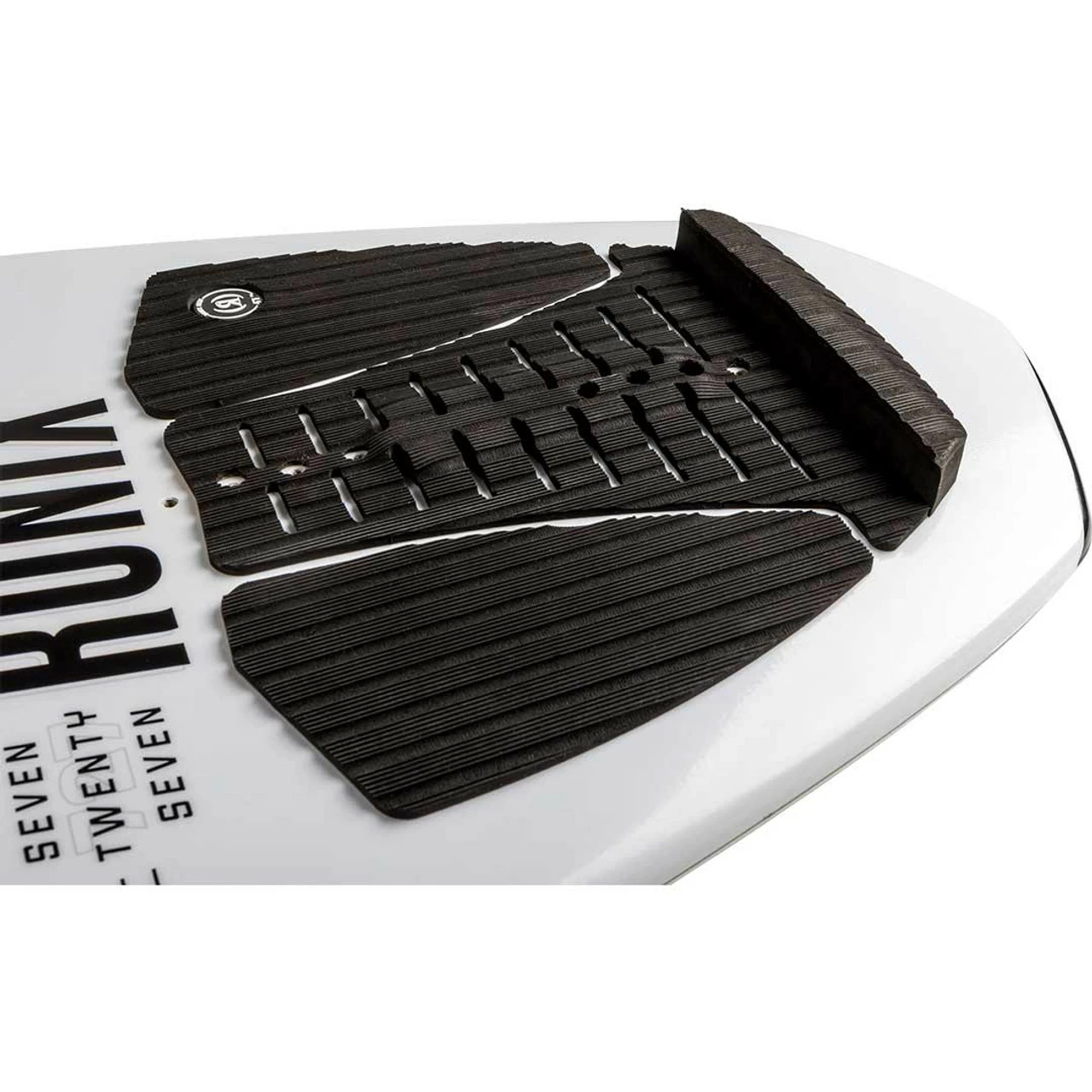 When you are wakesurfing you always want contact with the waterline. That gives you the control to create leverage and speed. As we foiled more, we realized you don’t want any of those qualities in your board. In wakefoiling, your angle and quickness should be coming directly from your foil. The board’s job is to rebound off the water as quickly as possible allowing the mast to get back into the correct height again. We did this by creating a pronounced directional rockerline looking